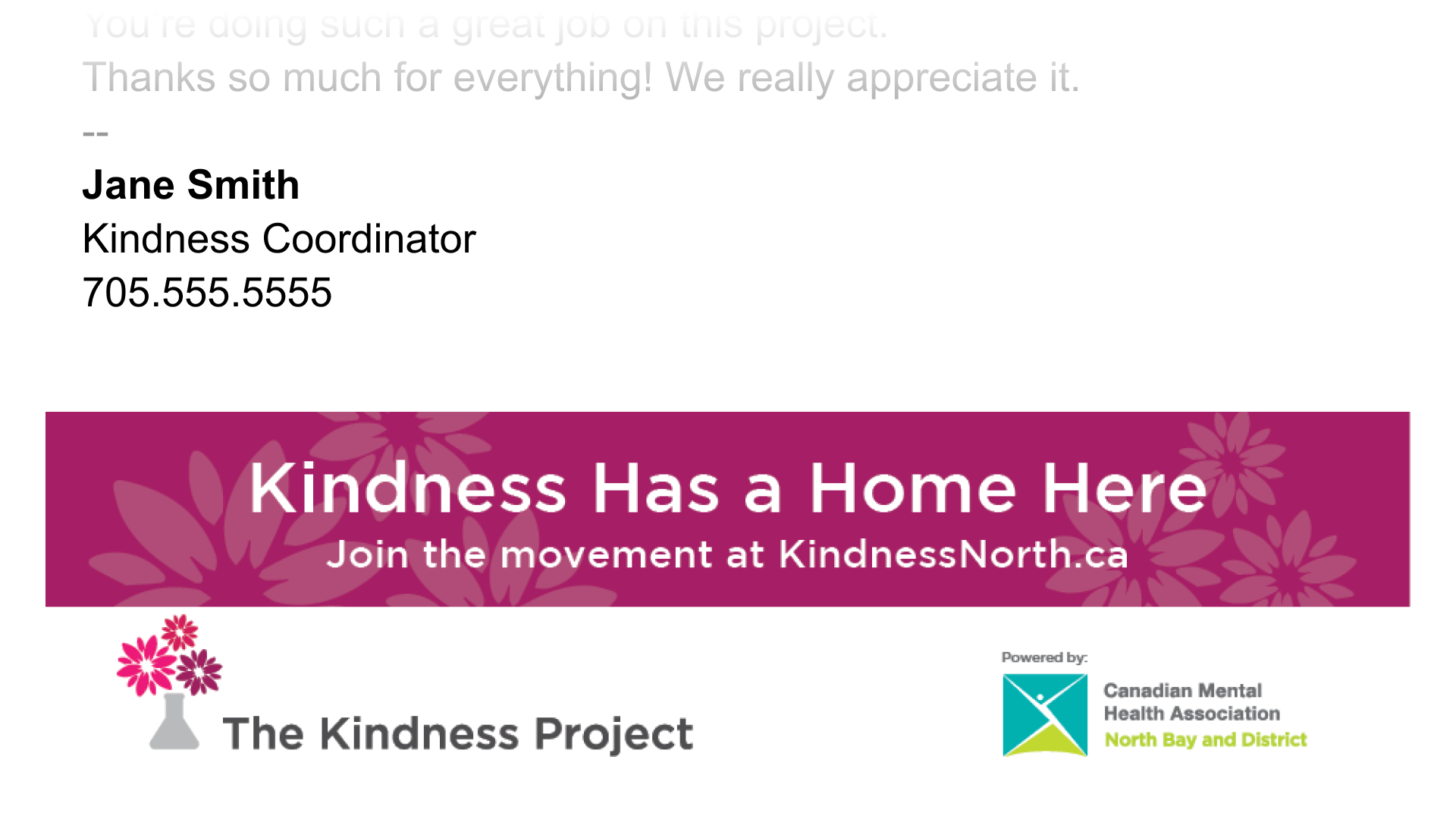 Download this email signature graphic to add to your emails to automatically share the Kindness Project with your colleagues clients, and friends to show that your organization cares.